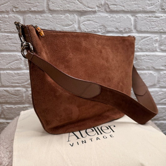 Gucci 2000s Gucci Suede Two Way Bamboo Cross Body Messenger