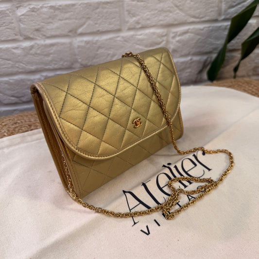 Chanel Early 1980s Rare Gold Lambskin Leather Single flap Cross Body