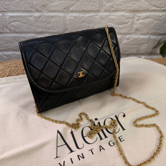 Chanel 1986 Rare Black Half Moon Quilted single flap