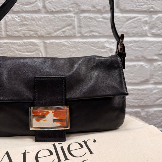 Fendi 1990s Original Fendi Baguette in black leather with limited edition animal print closure