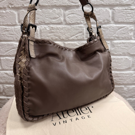 Bottega Veneta 1990s Bottega Veneta Taupe & Beige Lizard Leather Tote