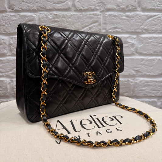 Chanel Early 1980s Rare Chanel Double Diamond Quilted Two Way Single Flap in black