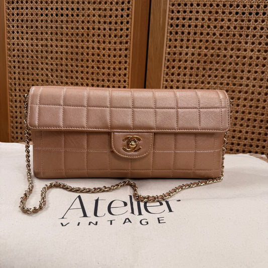Chanel 2002 Blush Pink Irredescent East West Chocolate Bar Single Flap