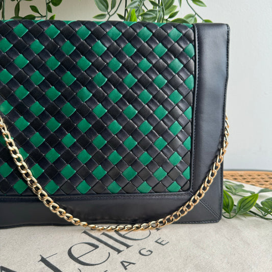 Bottega Veneta 1980s Emerald & Navy Intrecciato Clutch with Chain