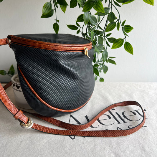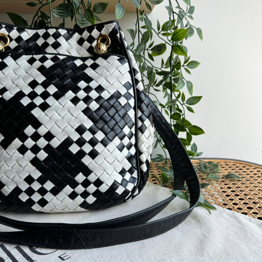 Bottega Veneta 1980s Black & White Intrecciato Shoulder Bag