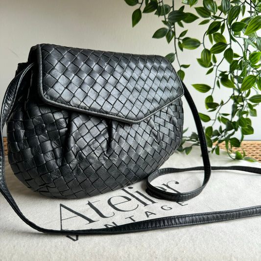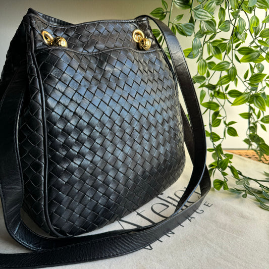 Bottega Veneta 1980s Black Intrecciato Shoulder Bag