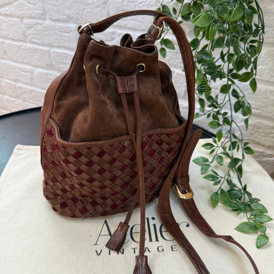 Bottega Veneta 1980s Rare Bi Color Intrecciato Leather Bucket