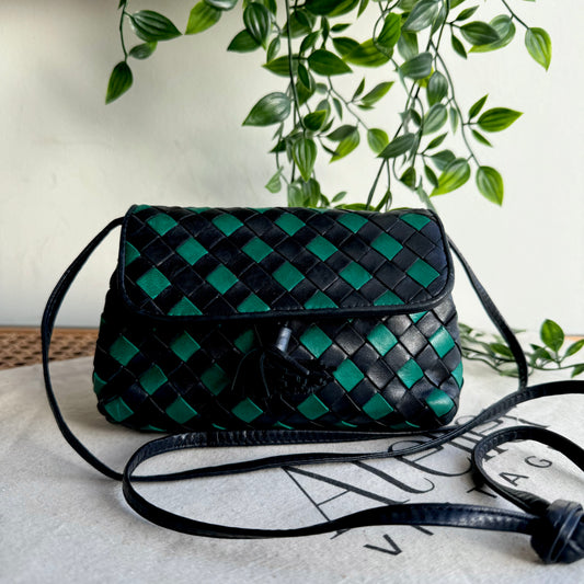 Bottega Veneta 1980s Emerald & Navy Intrecciato Micro Bag