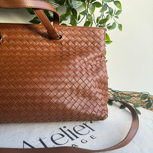 Bottega Veneta 1980s Brown Intrecciato Two Way Tote