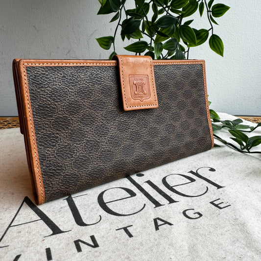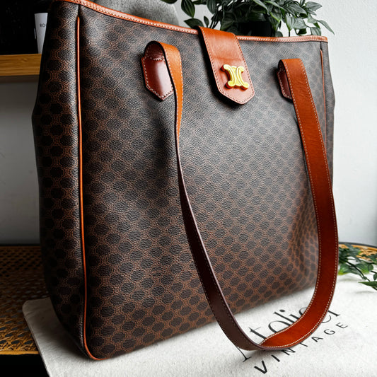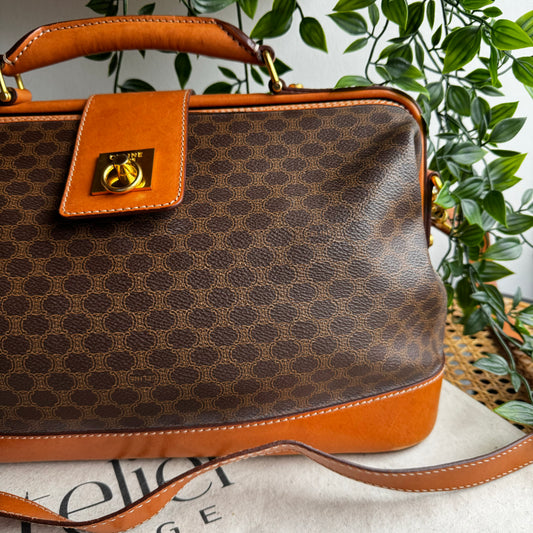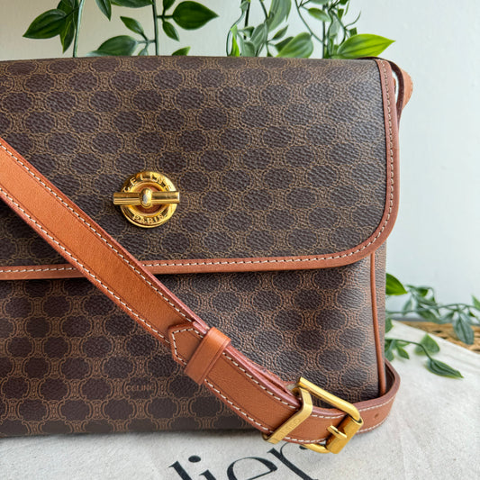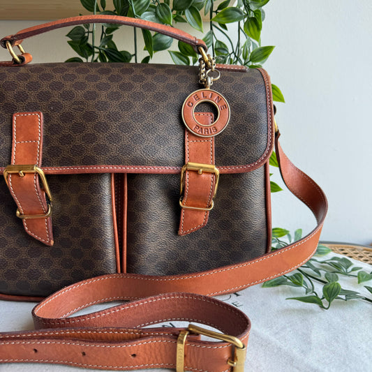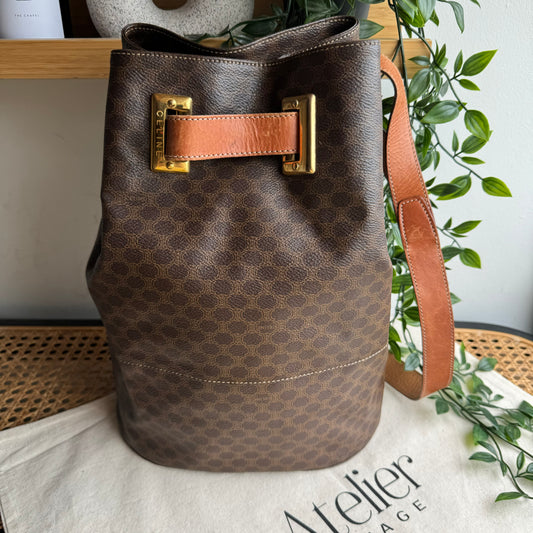 Celine 1990s Brown Macadam Print Sling Bucket Bag