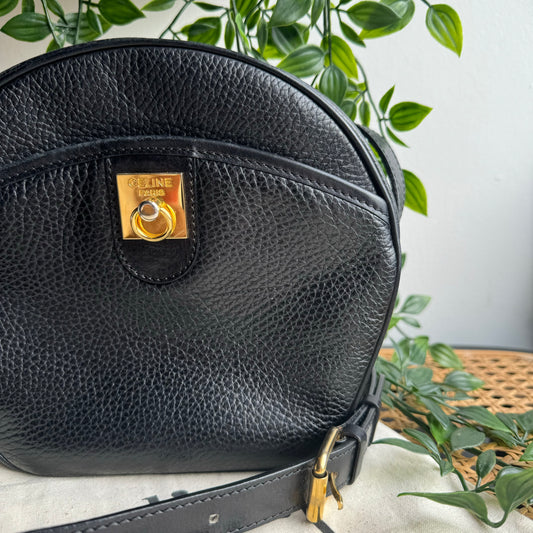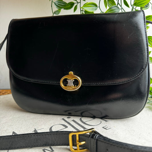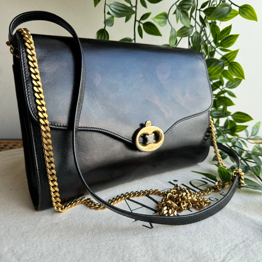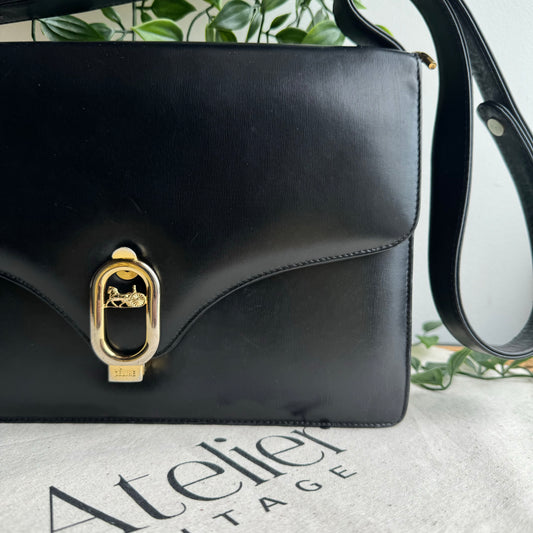 Celine 1980s Vintage Black Carriage Shoulder Bag