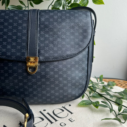 Celine 1990s Vintage Navy Triomphe Cross Body Bag