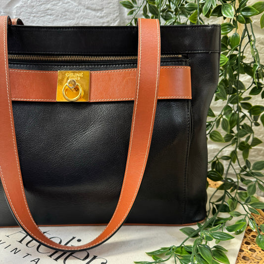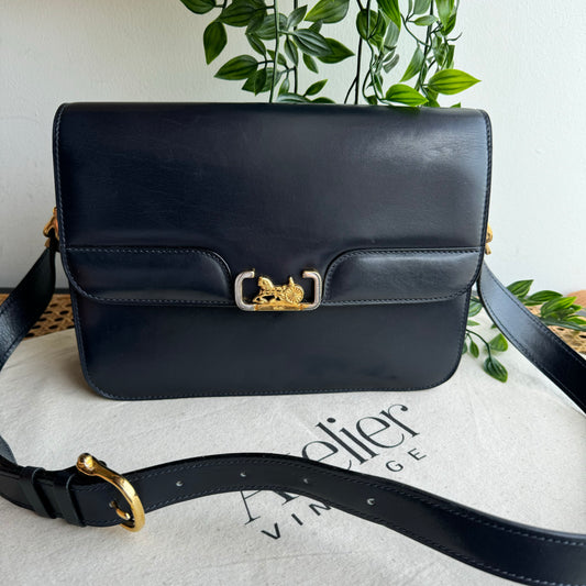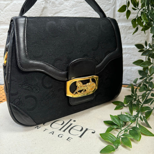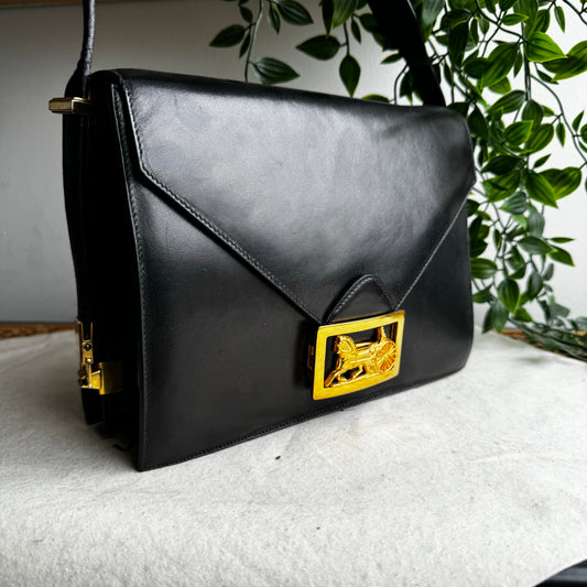 Celine Vintage Black Horse Carriage Shoulder Bag