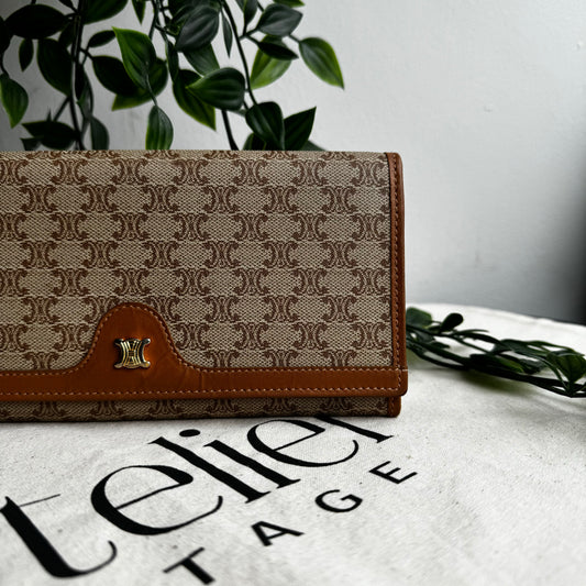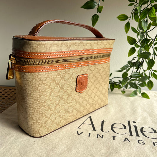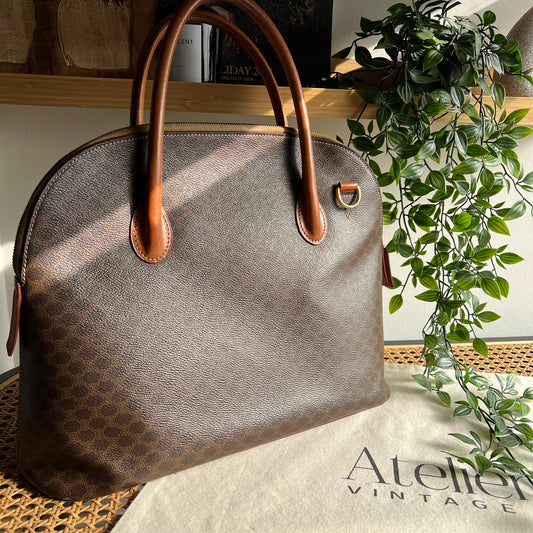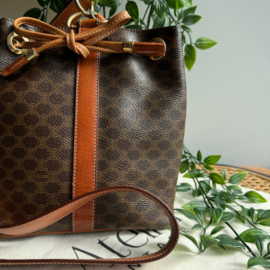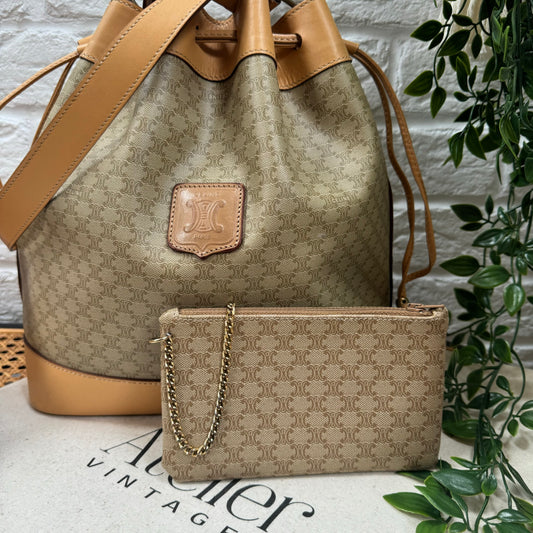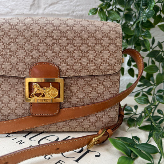 Celine Vintage Beige Macadam Horse Carriage Shoulder Bag