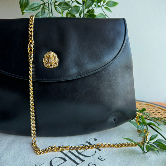 Celine 1980s Vintage Black Carriage Shoulder Bag