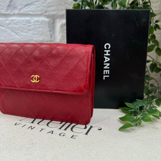 Chanel 1986 Red Diamond Stitch Clutch - Boxed