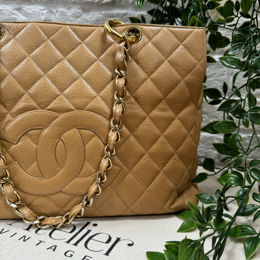 Chanel 2002 Beige Caviar Grande Timeless Tote