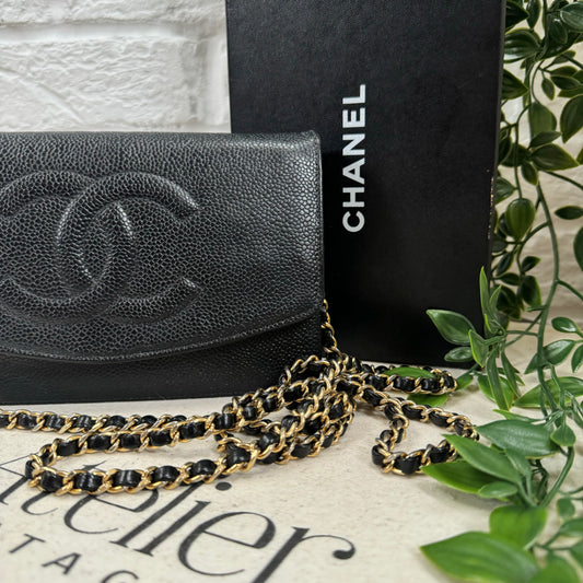 Chanel 2002 Caviar Leather Wallet on Chain WOC - Boxed