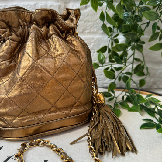 Chanel 1989 Aged Gold Tassel Bucket Bag