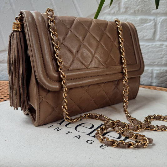 Chanel 1989 Rare Taupe Single Flap Tassel Bag