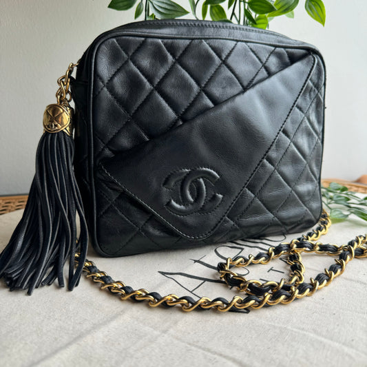 Chanel 1986 Quilted Lambskin Tassel Camera Bag