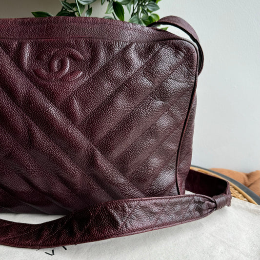 Chanel 1991 Burgundy Caviar Quilted Shoulder Bag