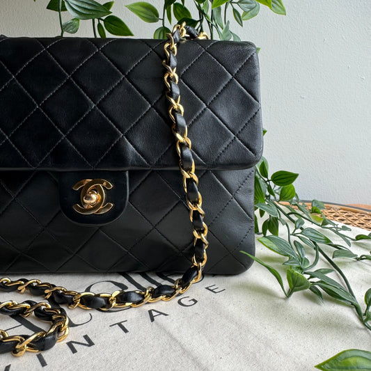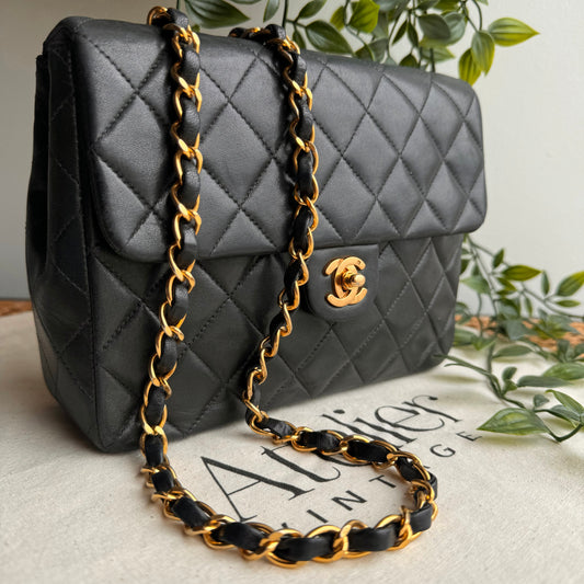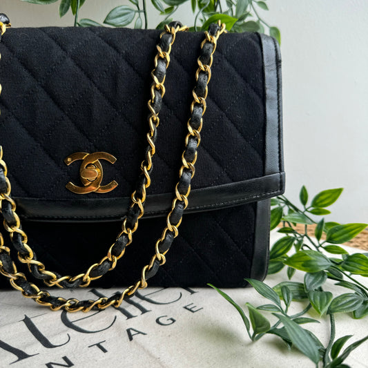 Chanel 1980s Square Lambskin & Jersey Single Flap
