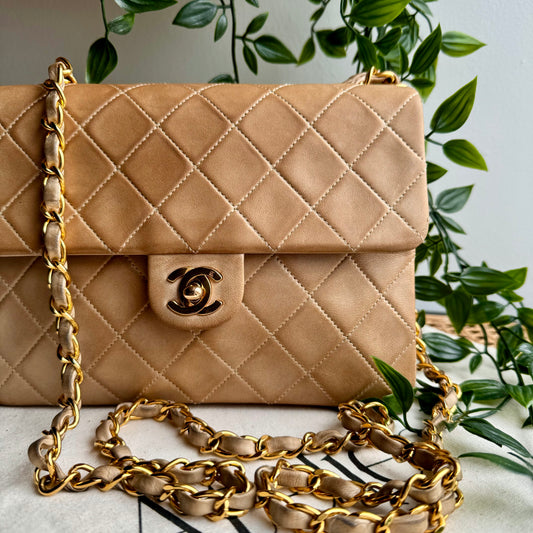 Chanel 1991 Beige Classic Single Flap Medium Square