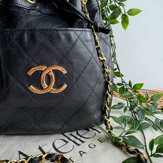 Chanel 1986 CC Charm Quilted Bucket Bag with Pouch