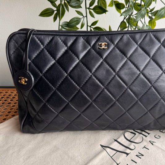 Chanel Early 1980s Clutch/ Pouch with CC Zip Charm