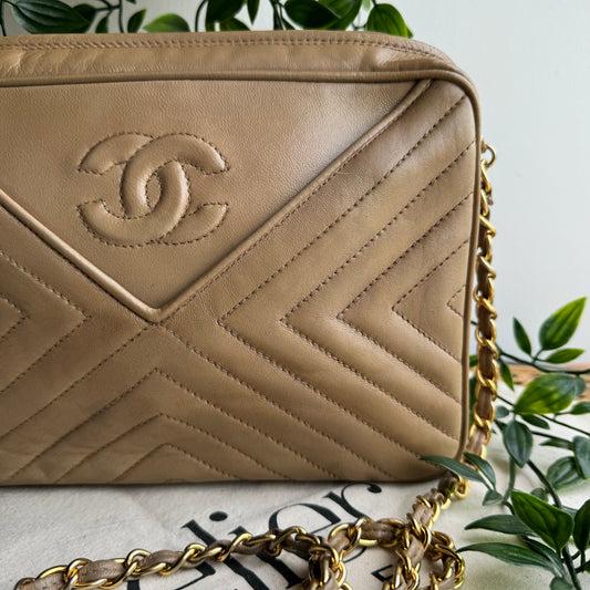 Chanel 1986 Dark Beige Vintage Tassel Camera Bag