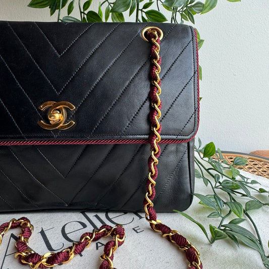 Chanel 1991 Bi Color Chevron Quilted Single Flap