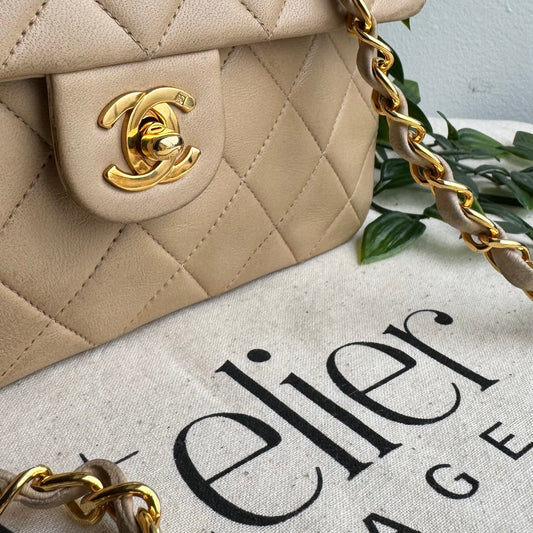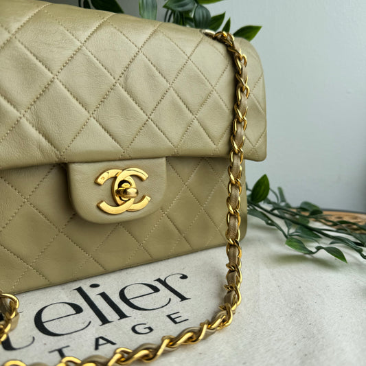 Chanel 1991 Beige Square Classic Single Flap Medium
