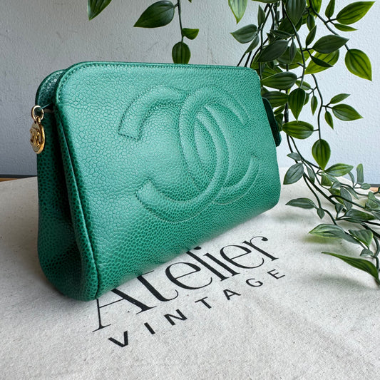 Sold outChanel 1994 Emerald CC Caviar Pouch