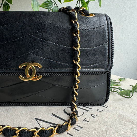 Chanel Early 1980s CC Clasp Wave Single Flap
