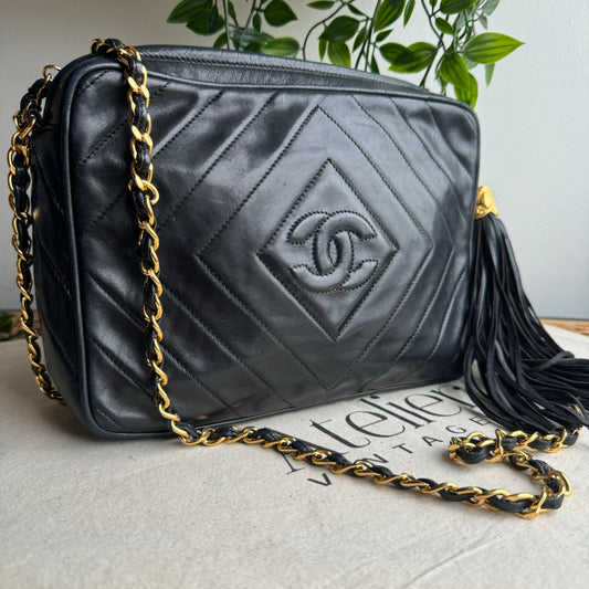 Chanel 1991 Diamond Quilted Vintage Tassel Camera Bag