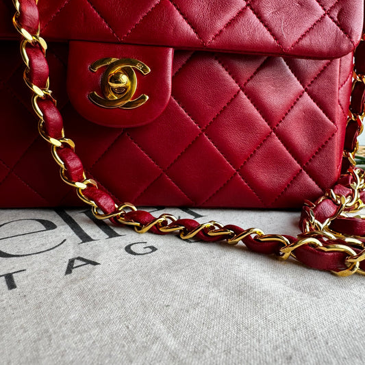 Chanel 1989 Poppy Red Square Classic Single Flap Medium