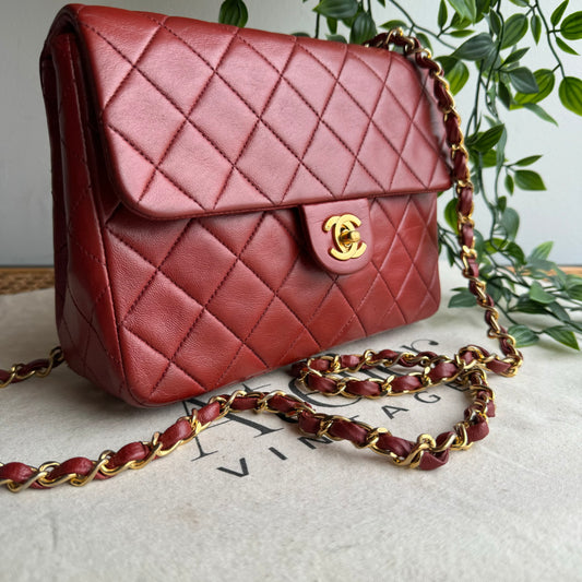 Chanel 1989 Bordeaux Red Square Classic Single Flap Medium