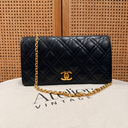 Chanel Early 1980s Rare Chanel Double Diamond Quilted Two Way Single Flap in black