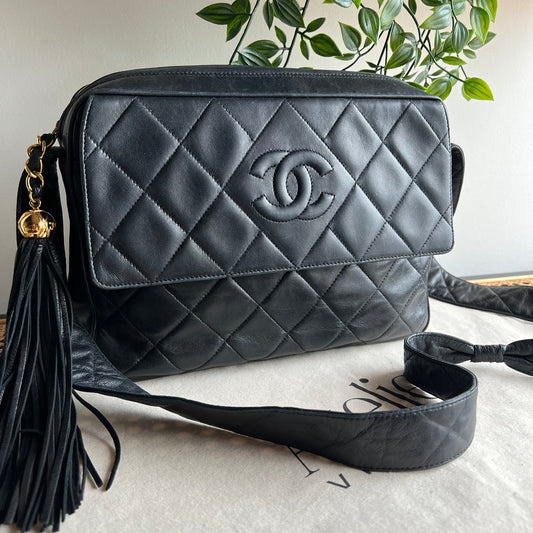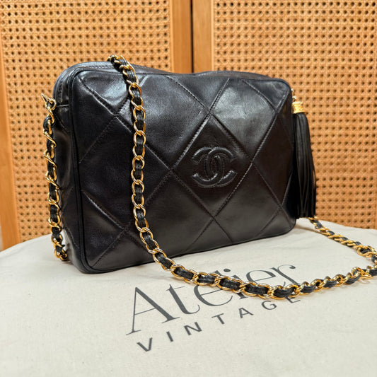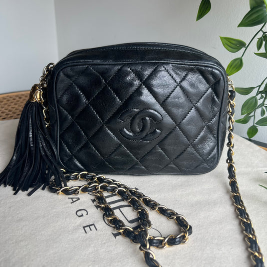 Chanel 1986 CC Quilted Black Tassel Camera bag