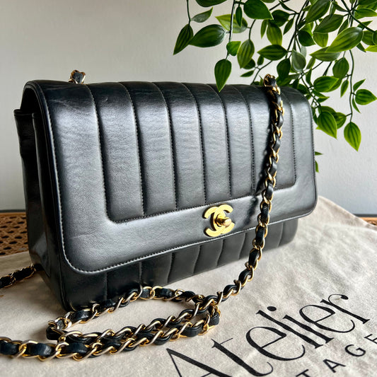 Chanel 1989 Rare Chanel Paris Limited Edition vertical quilted Single Flap in black