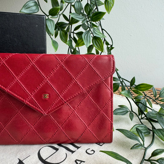Chanel Rare Poppy Red 1991 Envelope Card & Coin Pouch Boxed