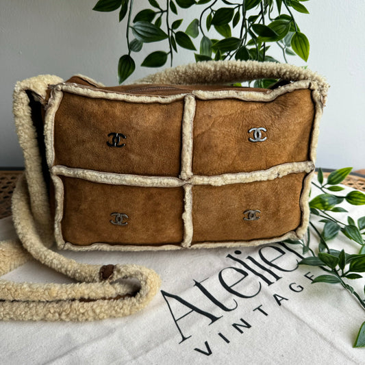 Chanel 2000 Suede & Shearling CC Shoulder Bag