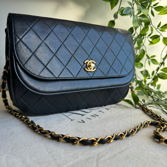 Chanel 1980s Half Moon Double Flap Shoulder Bag