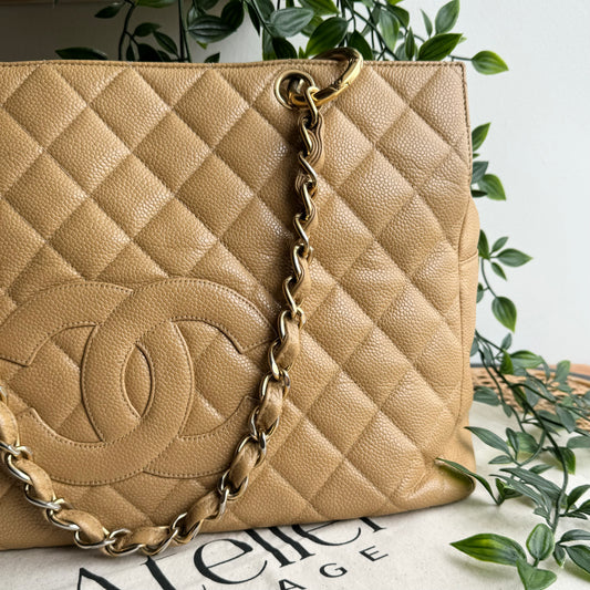 Chanel 2002 Beige Caviar Grande Timeless Tote