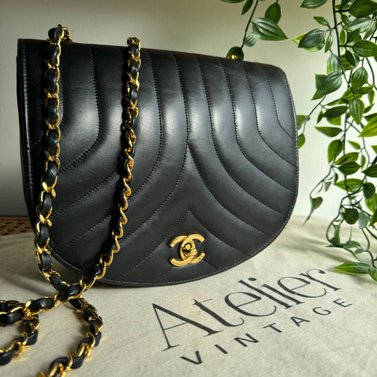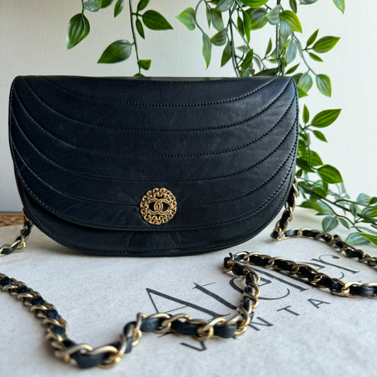 Chanel 1970s Rare Vintage Demi Lune Full Flap Bag