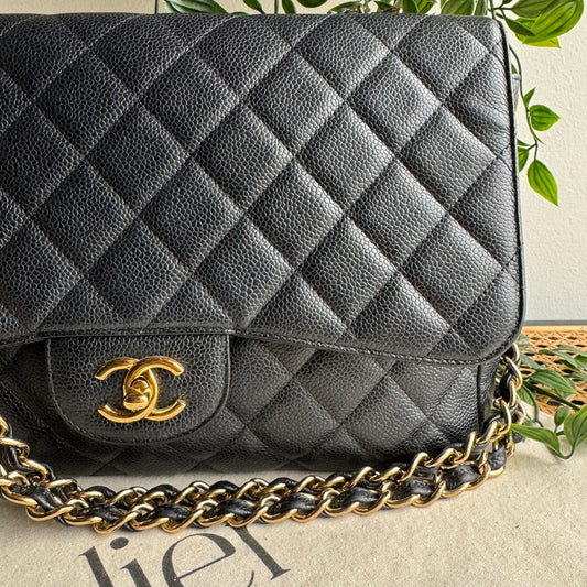 Chanel 2009 Caviar Leather Classic Single Flap Jumbo