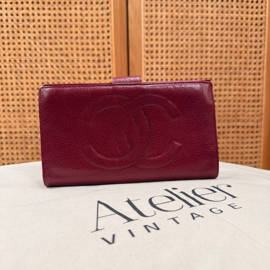 Chanel 1994 Caviar CC Quilted Card Kisslock Purse in Bordeaux