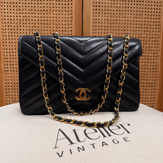 Chanel 1986 1986 Chevron Quilted Envelope Single Flap