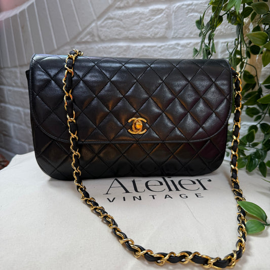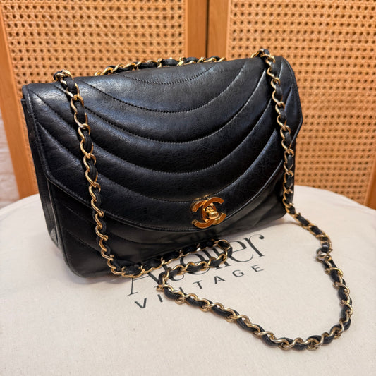Chanel 1986 Rare Black Half Moon Quilted single flap